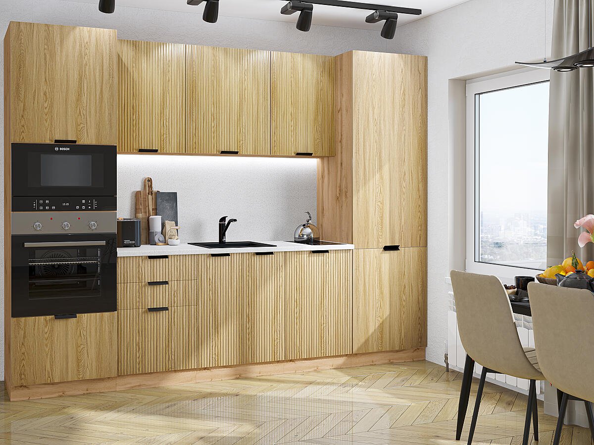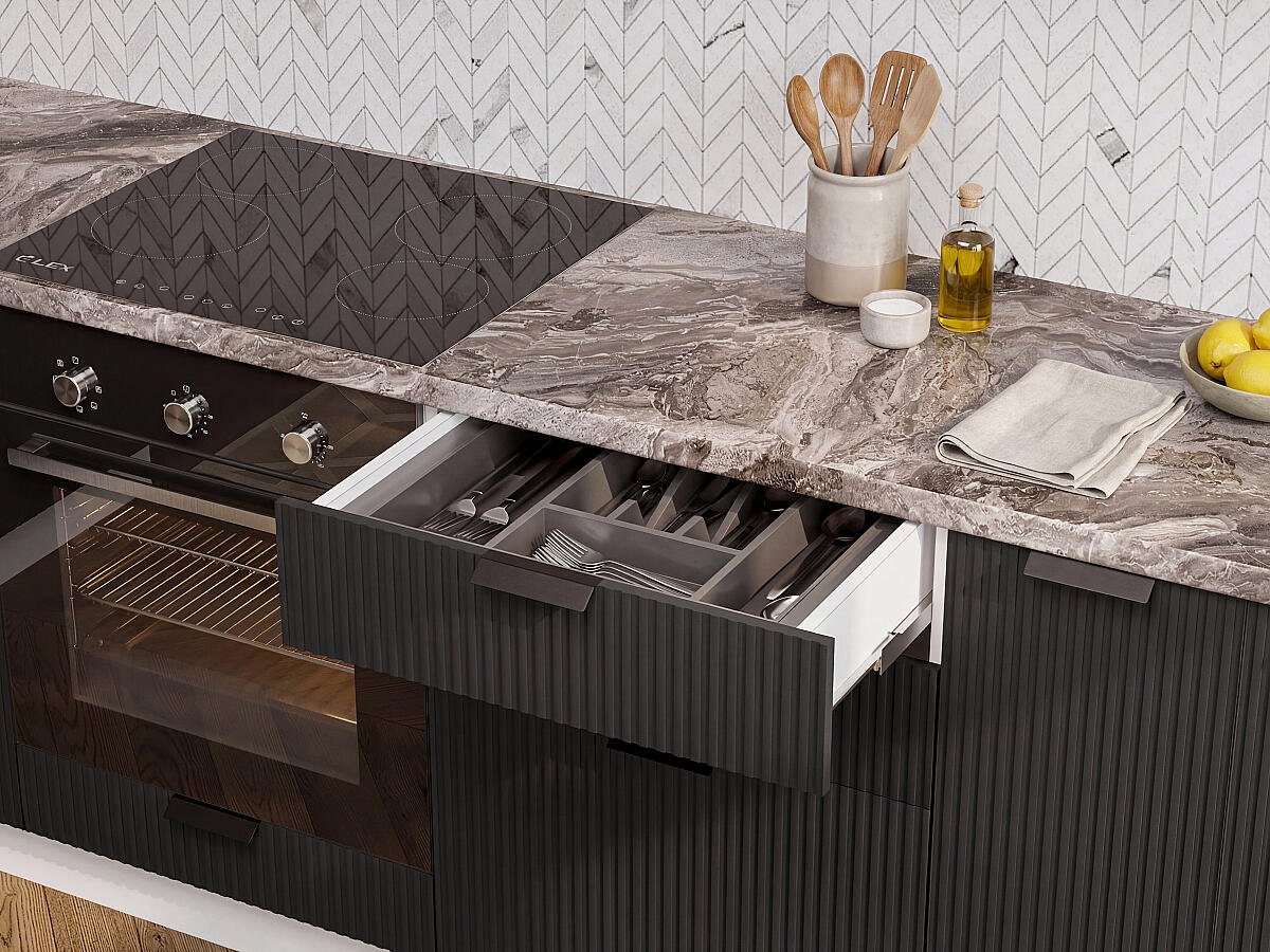 На выбор покупателя влияет конфигурация помещения, целевое назначение, общая площадь. Производитель предусмотрел вариант посекционного приобретения изделий с разными показателями глубины (диапазон 350 — 480 мм).