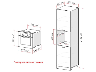 Шкаф пенал с 2-мя дверцами под технику Евро Лайн (2132х600х574)