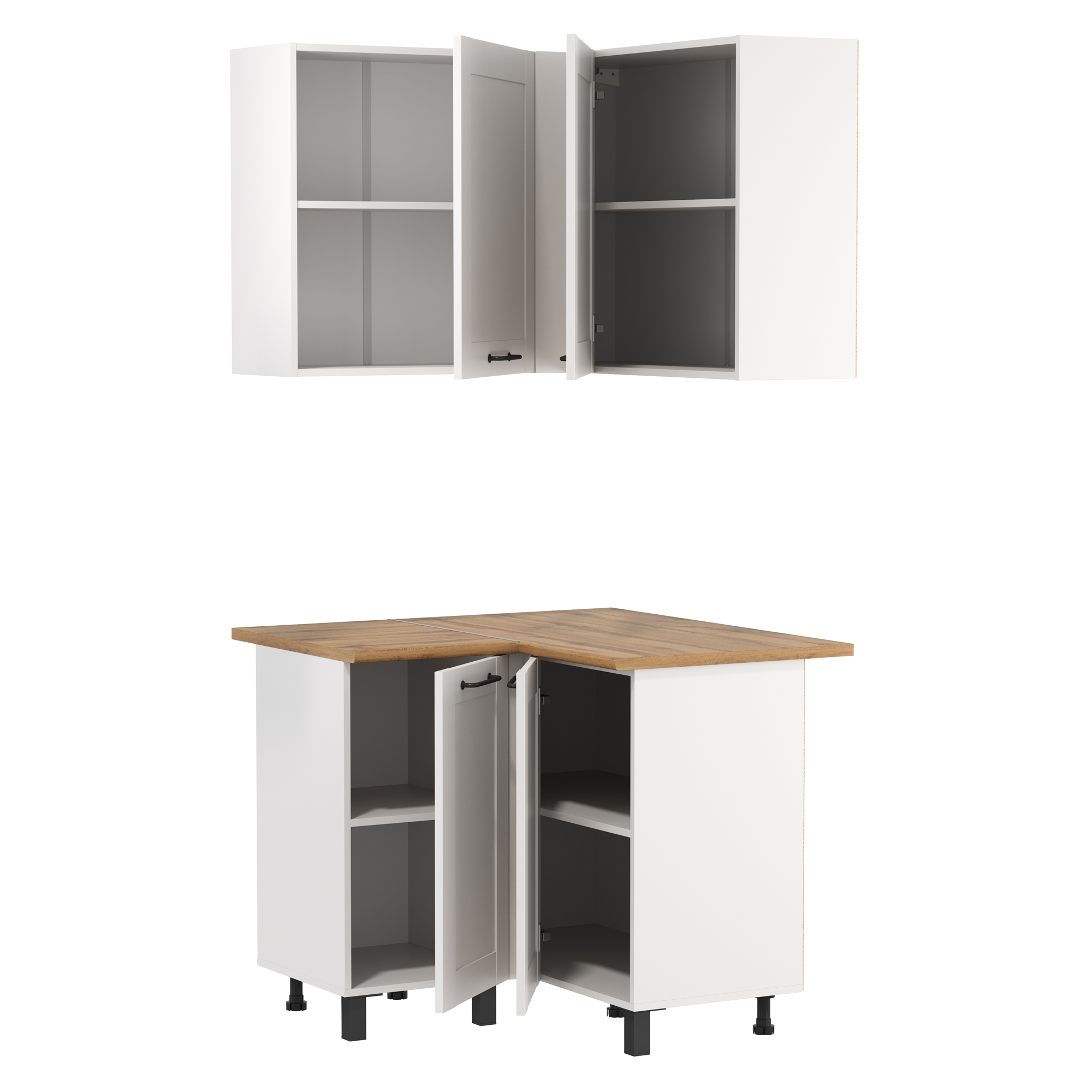 Шкаф угловой Аризона (белый / столешница: дуб вотан / ДВПО: белый / ПВХ софт белый 0,3мм / профиль: ПВХ белый О) исполняется в классическом стиле и спокойных цветах. Модель сочетает в себе простоту и функциональность, но при этом не выглядит громоздко. Она гармонично впишется в пространство, не утяжеляя его.