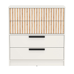 Цвет белый Сандал смотрится более дорого, чем дуб коньяк. Поэтому взяли именно такой вариант. Плюс ручки с эффектом патины. Сочетание классное. Я использую комод как столик для макияжа: вместимость большая, высота удобная. Повесила еще зеркало и делаю макияж. Кстати, комод привезли разобранным, собирал муж. Проблем не возникло, инструкция была