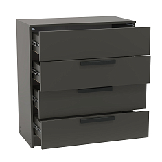 Фирменные комоды выпускаются с роликовыми или шариковыми направляющими. Могут дополнительно оборудоваться зеркалами и дверками, а также оснащаться накладными дизайнерскими декоративными элементами.